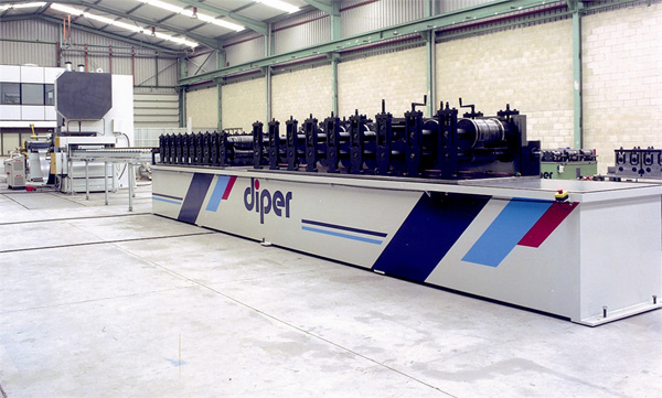 Punching press, guillotine shear and profiling machine with interchangeable cassettes. (Automatic line for manufacture of profiles for scaffolding platforms - Maximum strip: 600 x 2 mm.)