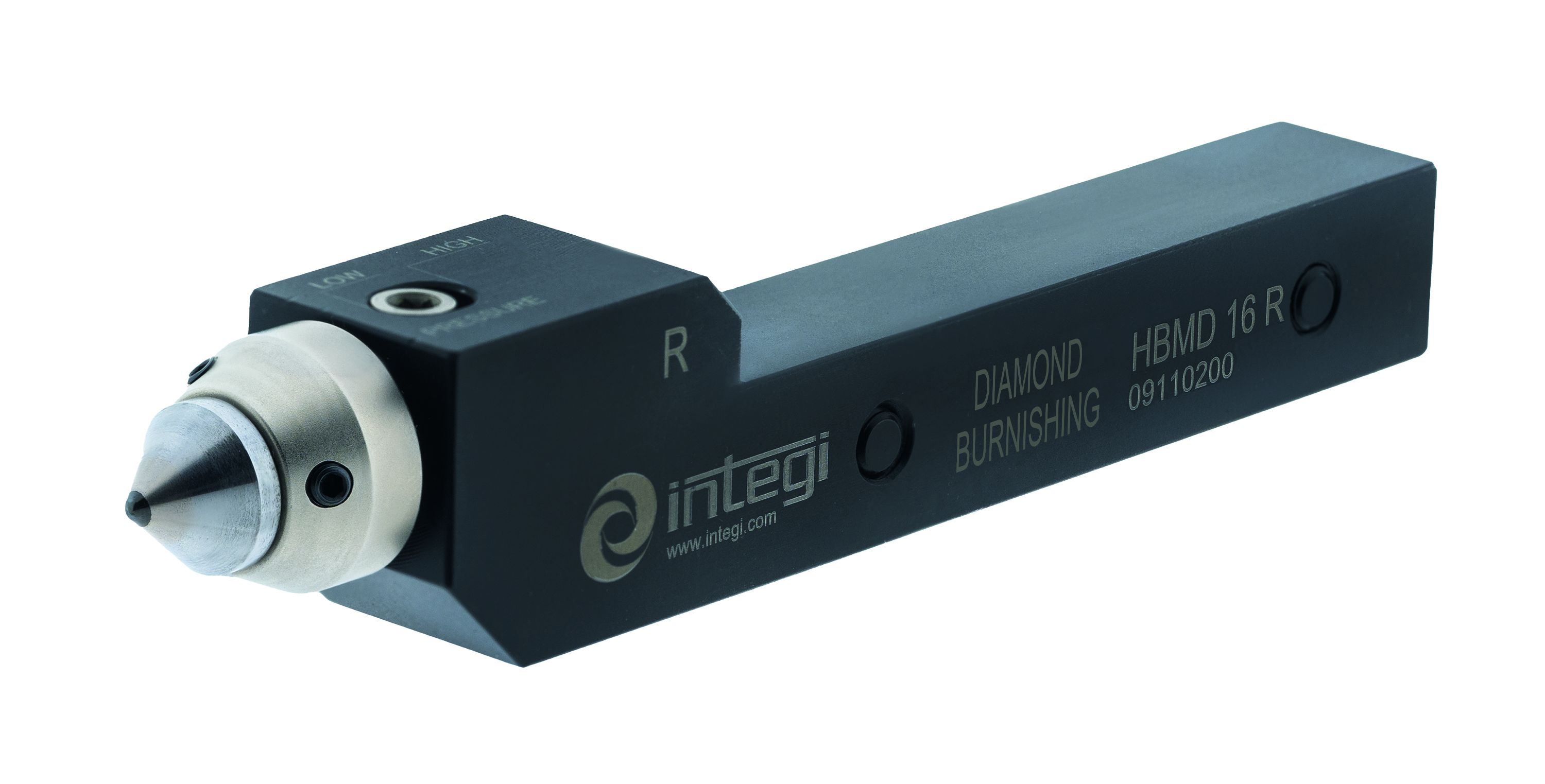 Herramienta de bruñido con punta de diamante para utilizar en piezas de durezas hasta 63 HRC. Se pueden obtener acabados superfi ciales por debajo de Ra 0,2.